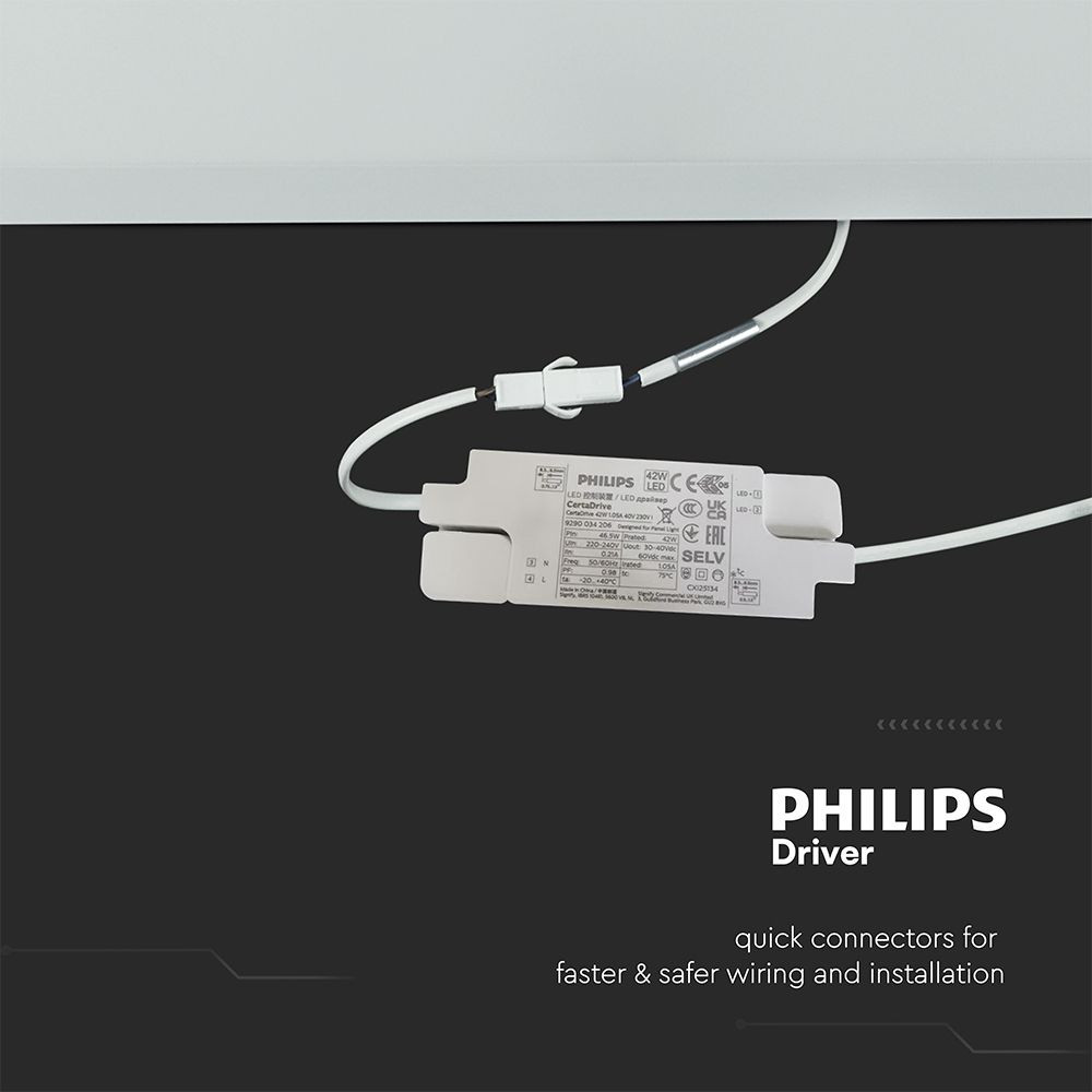 V-TAC süllyeszthető LED panel természetes fehér 40W 60 x 60cm, Philips tápegységgel  - SKU 23822