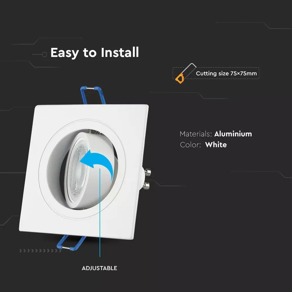 V-TAC GU10 LED spotlámpa keret, fehér billenthető lámpatest - SKU 3605